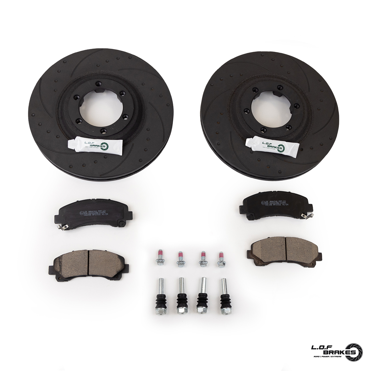 • 4x LOF POWERspec brake pads, Performance fast road friction with mechanical wear indicators